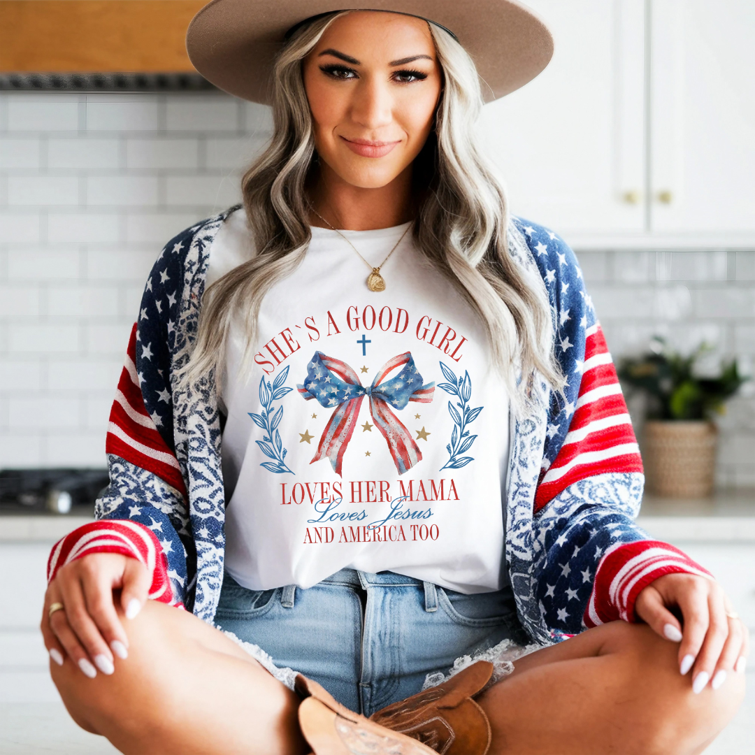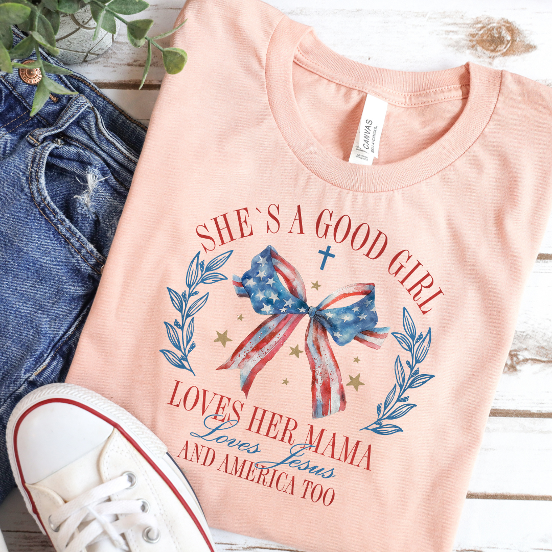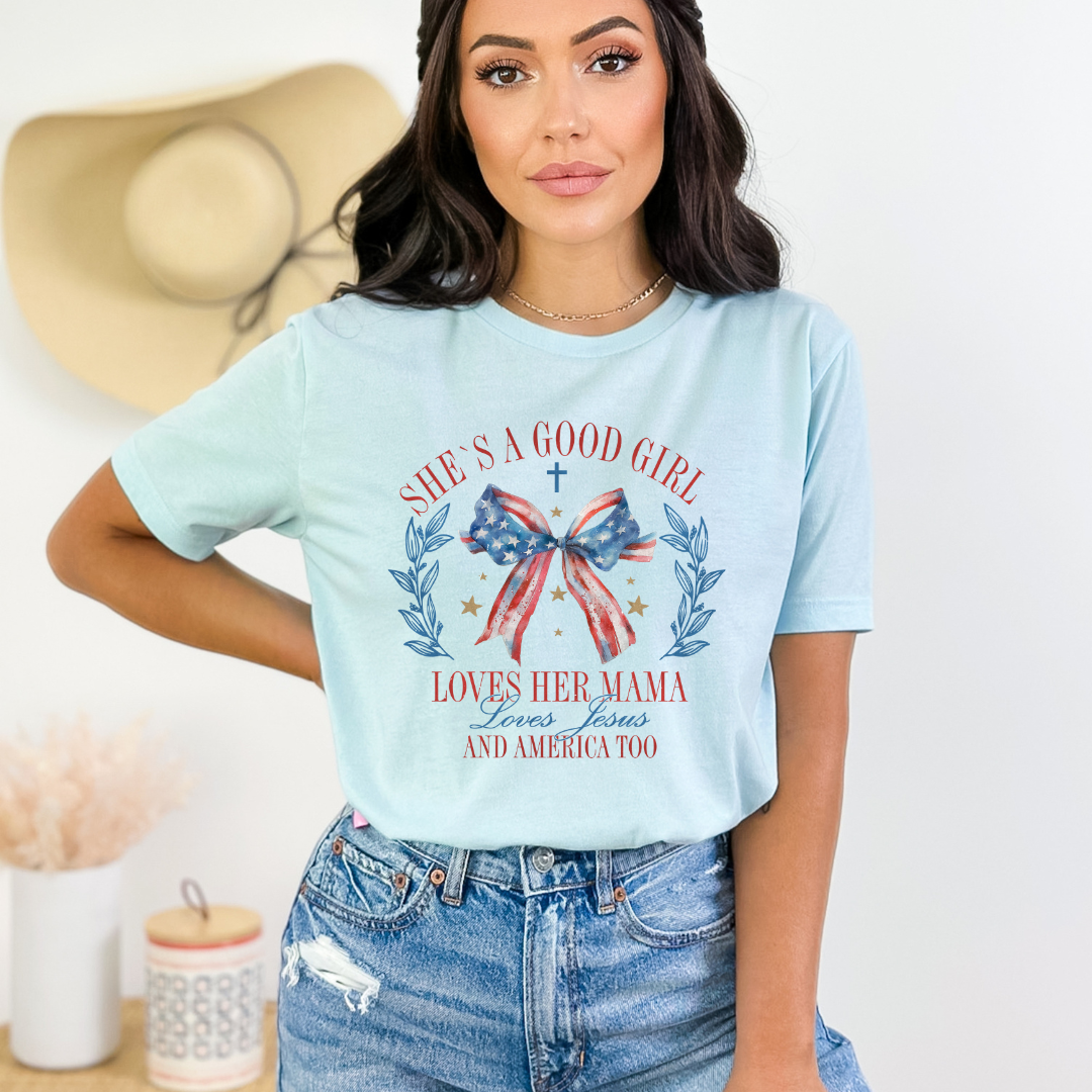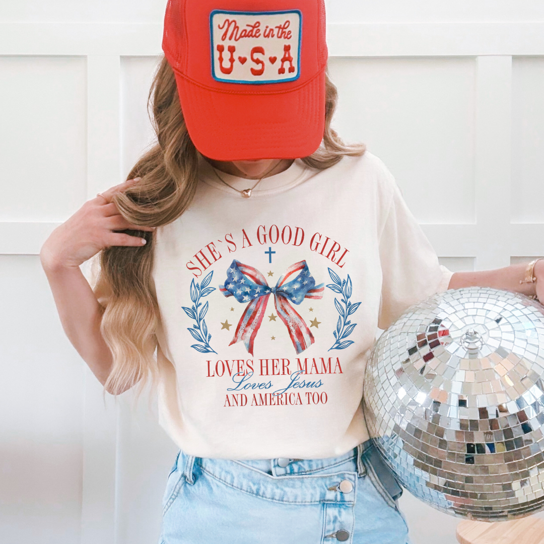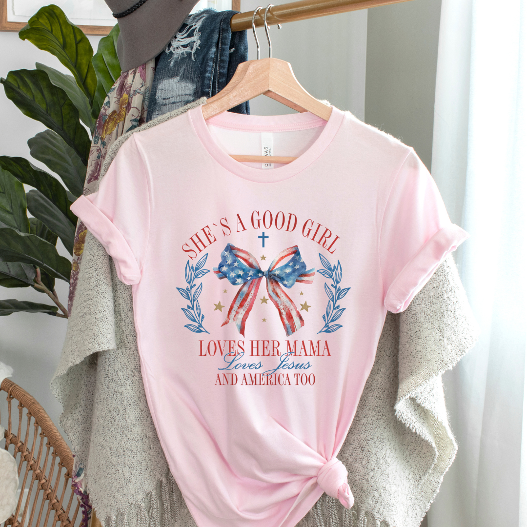 She's a Good girl, she loves her Mama, America and Jesus Too - 4TH OF JULY SHIRT