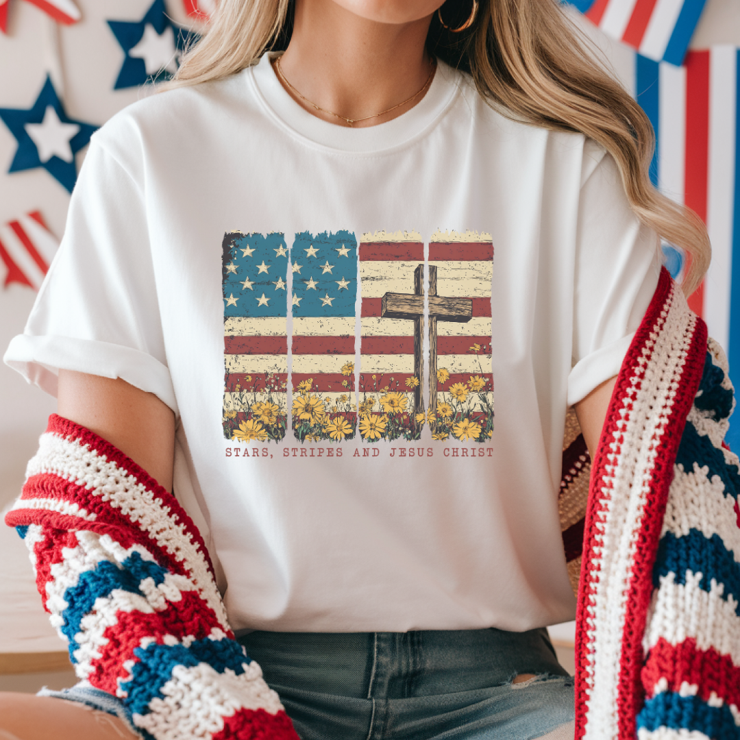 Star Stripes and Jesus Christ- 4TH OF JULY SHIRT