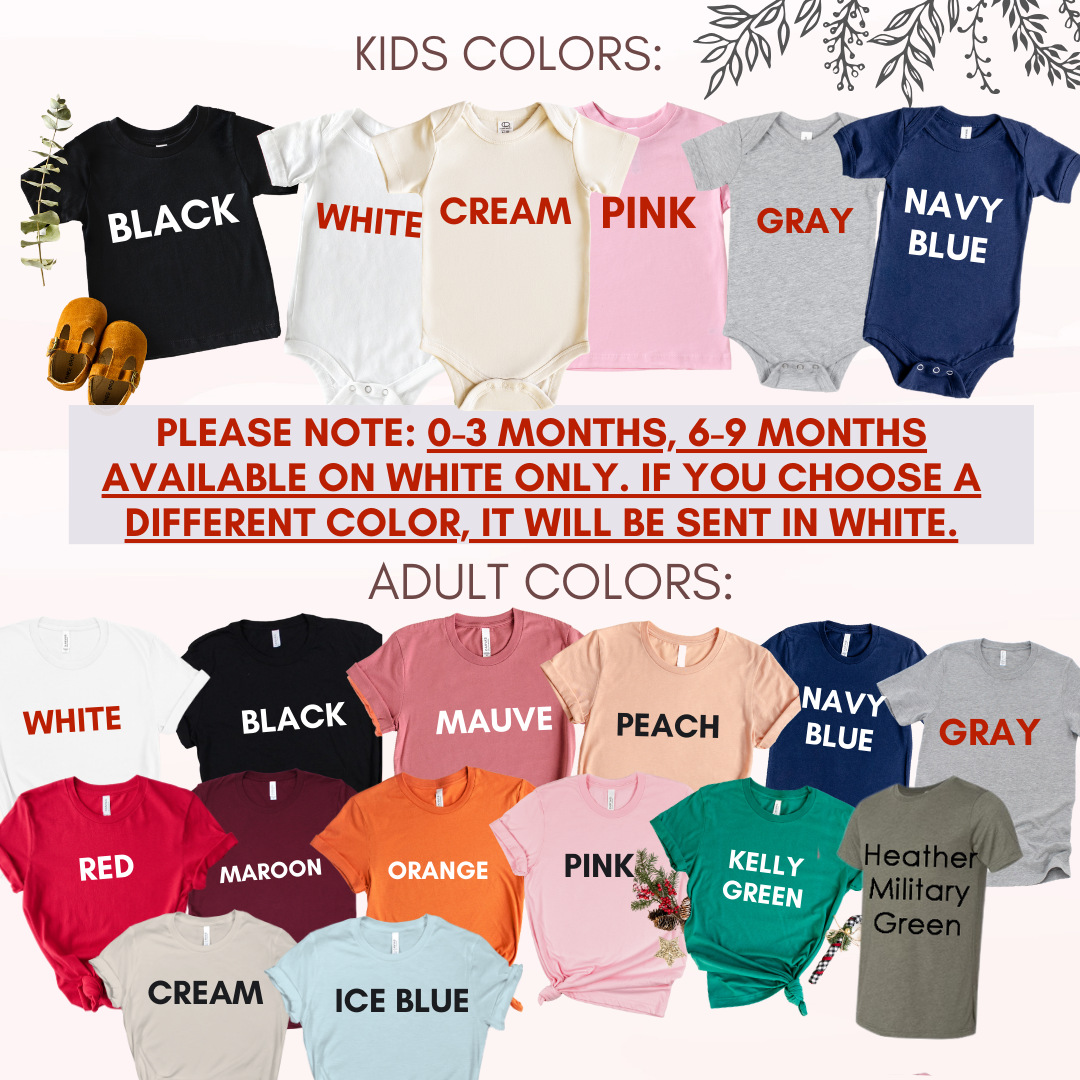 Each of your products are custom made to order- this means your shirt is uniquely made to you! You pick your favorite shirt color, lettering and customization.