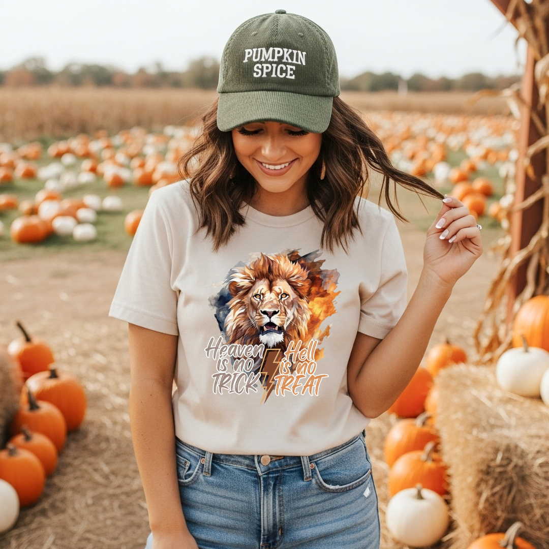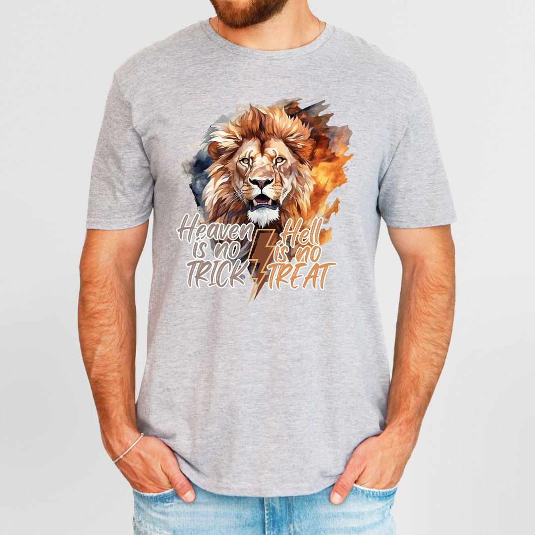 Share bold truth this season with our “Heaven Is No Trick, Hell Is No Treat” Christian t-shirt. Designed for men, women, and youth groups, this lightweight graphic tee blends modern fashion with a powerful faith message.