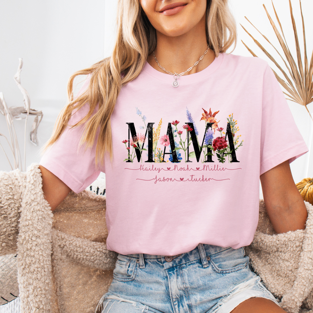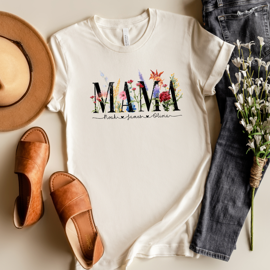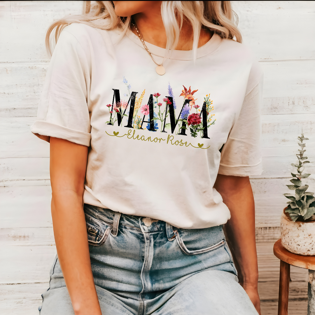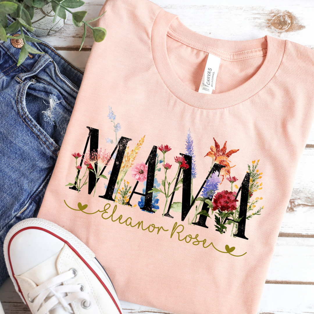 PERSONALIZED FLORAL MOM SHIRT - MOM TEE